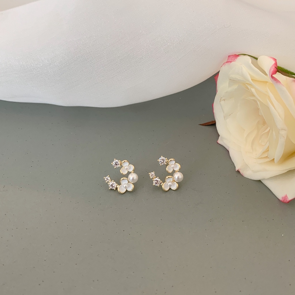 Bông Tai Dạng Kẹp Không Cần Lỗ Hình Hoa Đính Đá & Ngọc Trai Phong Cách Hàn Quốc CEa38