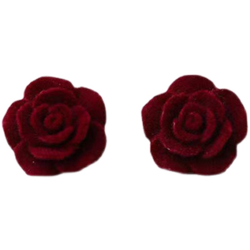 Bông Tai Hoa Hồng Đỏ Rượu Vang Phong Cách Pháp Cổ Điển