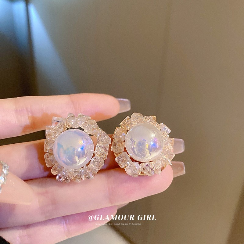 Bông Tai Mạ Bạc 925 Đính Đá Zircon Ngọc Trai Sang Trọng Phong Cách Hàn Quốc