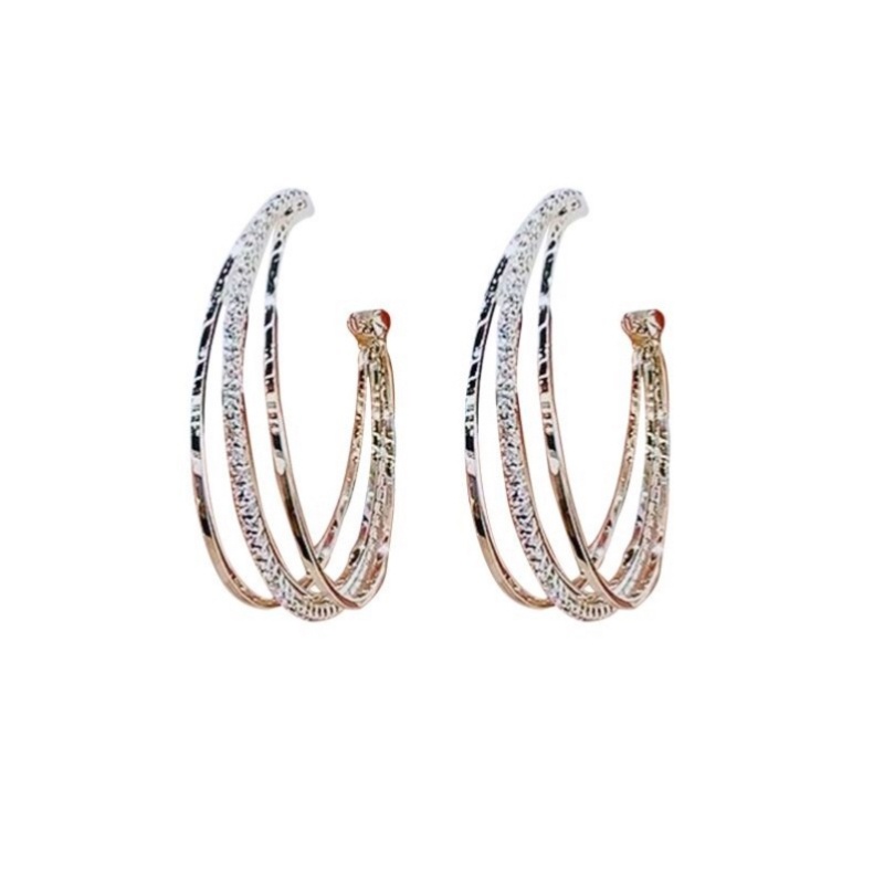 Bông Tai Mạ Bạc 925 Nhiều Lớp Đính Đá Phong Cách Âu Mỹ