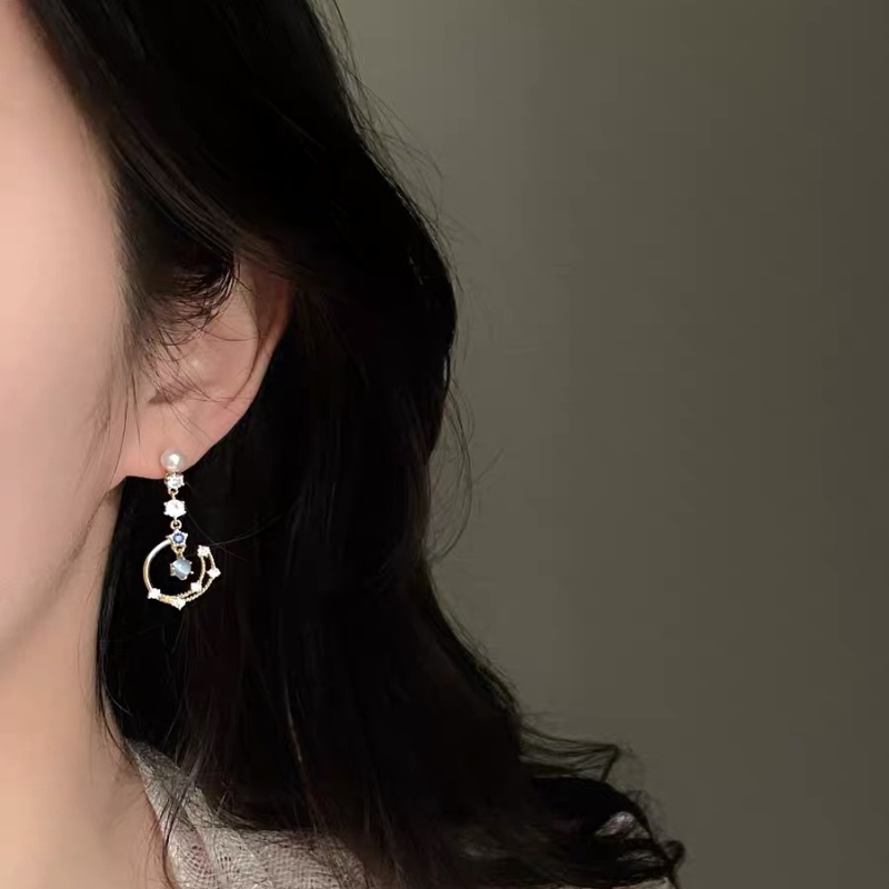 Bông tai mặt trăng, bông tai dài bất đối xứng thanh lịch, bông tai kim bạc Hàn Quốc, thời trang cao cấp với bông tai nữ tính