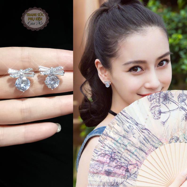 Bông tai nữ thời trang Hàn Quốc, mẫu mới đá cực sáng, bạc 925 giá rẻ