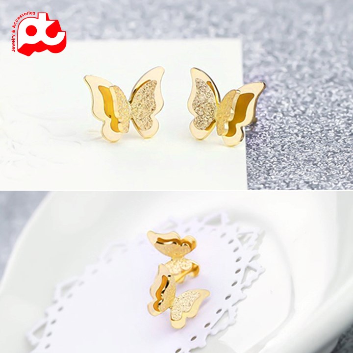 Bông tai titan nữ con bướm phun cát nhiều màu sang trọng xinh xắn đầy quyến rũ trangsucpt thép không gỉ cao cấp PTBTTNU1