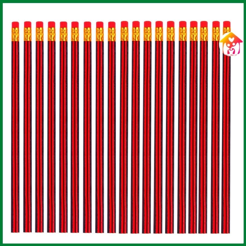 Bút chì thân gỗ lục giác màu đỏ đen kèm tẩy