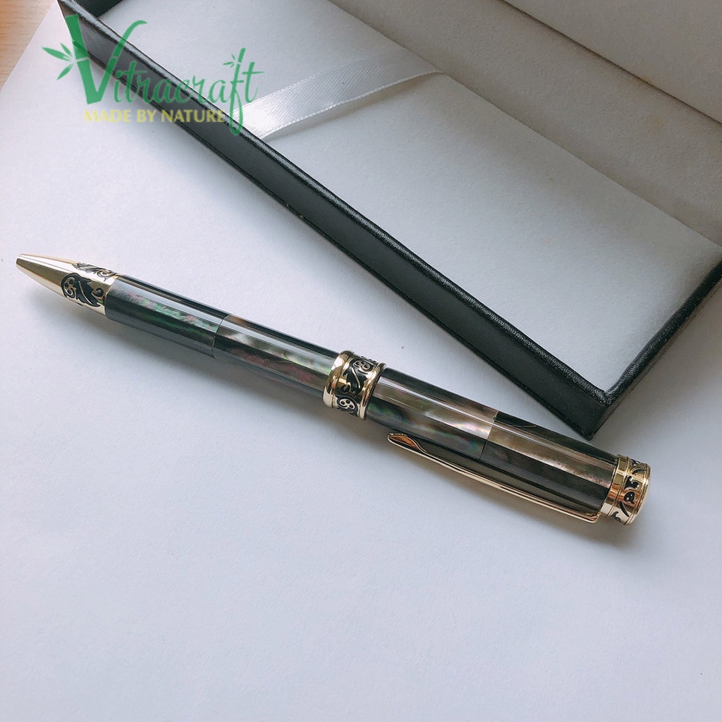 Bút Khảm Vỏ Trai Đen Tự Nhiên.100% Được làm thủ công, Bút Có Hộp Da Đen Sang Trọng. Làm quà tặng người thân, đối tác.