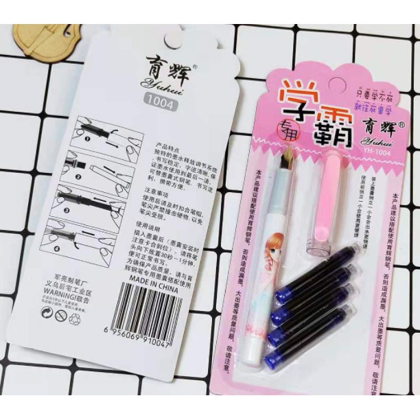 Bút mực máy xóa được hoạt hình tặng kèm 1 ống mực ngòi to, bút mực học sinh xóa được loại tốt
