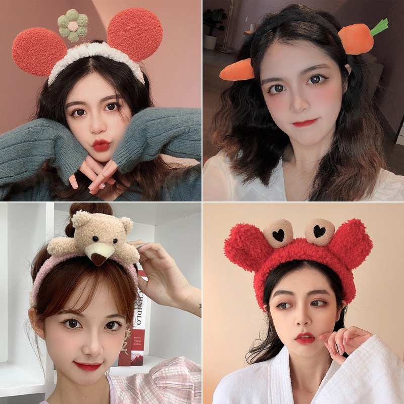 Băng Đô Cài Tóc Rửa Mặt Hình Tai Gấu / Dâu Tây Bằng Lông Nhung Dễ Thương Xinh Xắn 2023