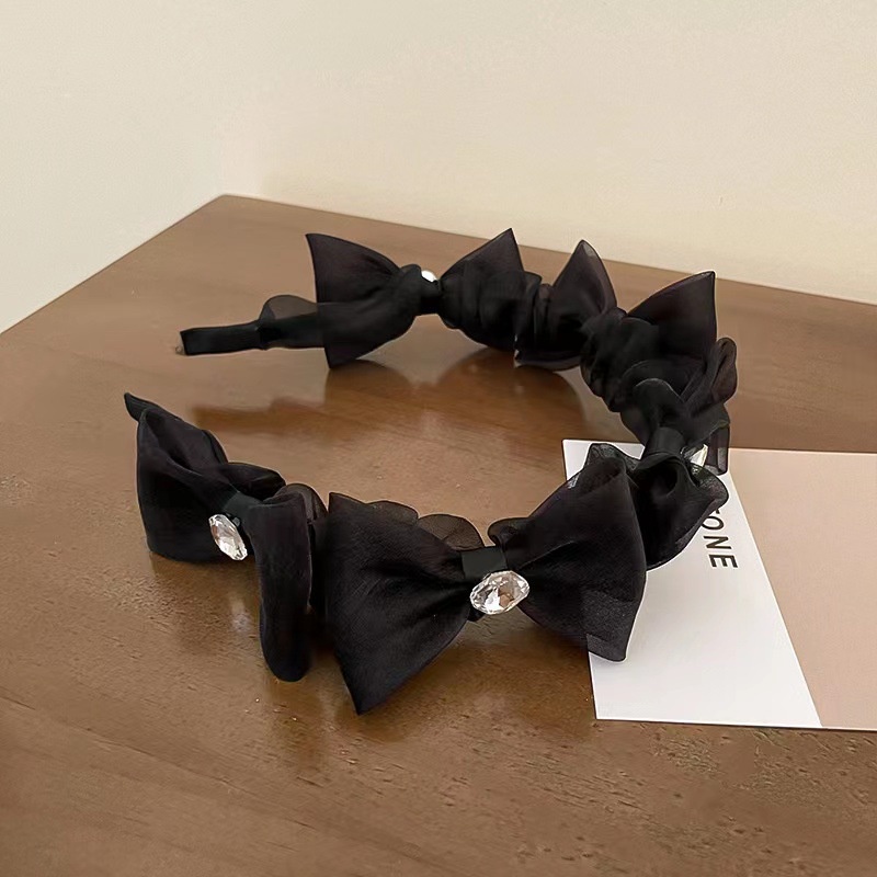 Băng Đô Cài Tóc Bản Rộng Phối Lưới Thắt Nơ Đính Đá Pha Lê Ngọt Ngào Phong Cách Hàn Quốc Cho Nữ