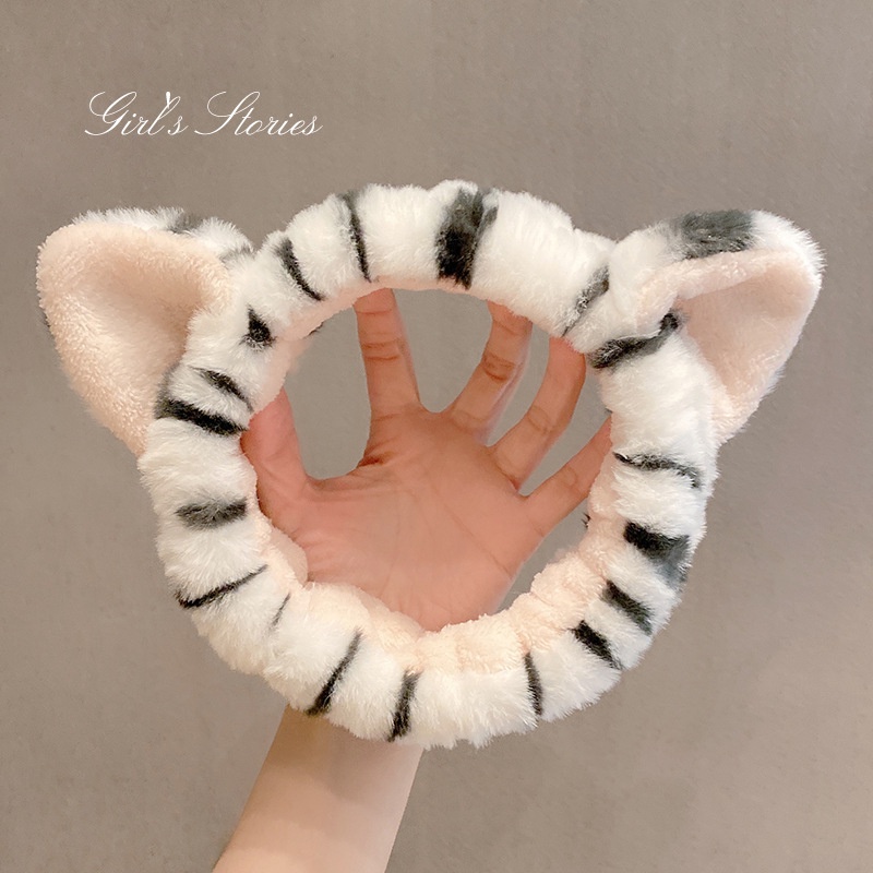 Băng đô cài tóc tai hổ nhồi bông dễ thương, bờm tóc rửa mặt phong cách Hàn Quốc