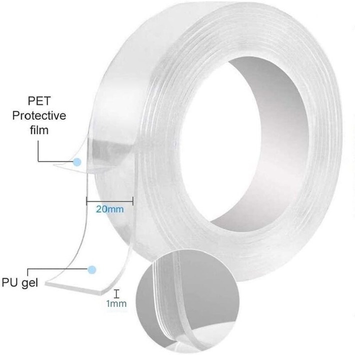 Cuộn băng keo 2 mặt trong suốt, chất liệu silicon Nano siêu dính, dài 1 MÉT