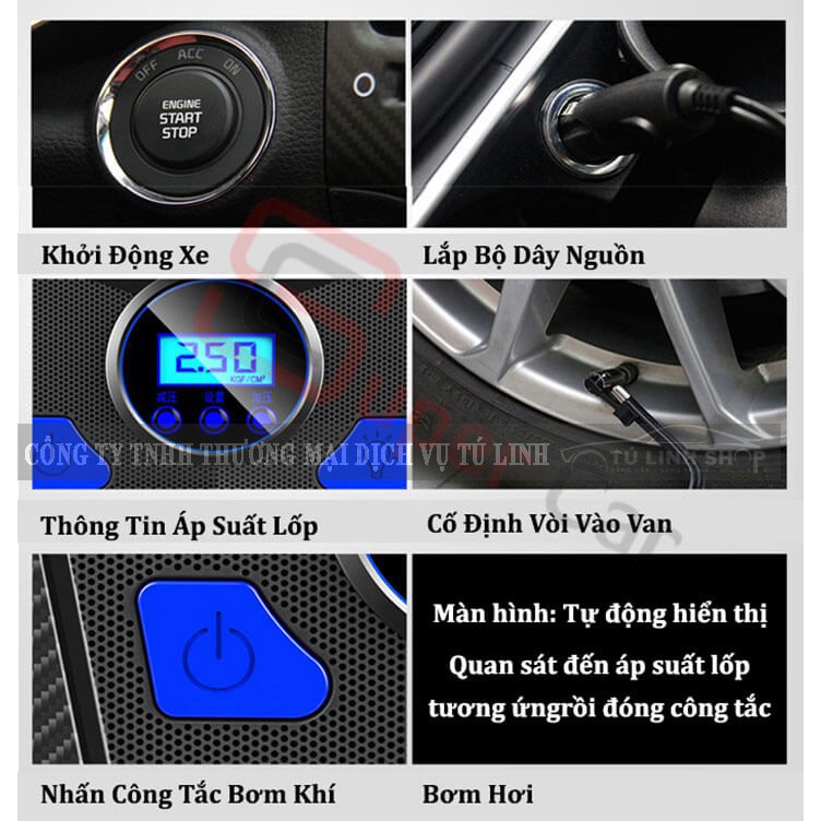 Bơm lốp ô tô, xe máy AIKESI bơm điện tử tự ngắt {Bảo hành 12 tháng 1 đổi 1} Đã có lần nào các bác tài phải gặp những rắc rối liên quan đến bánh xe ô tô như thủng lốp, non hơi, xịt hơi chưa? Nhất là khi đang di chuyển trên quãng đường dài lại không có tiệm sửa xe nào cả thật nguy hiểm. Để khắc phục về các tình trạng như vậy bạn nên sắm ngay cho mình bộ máy bơm lốp ô tô điện tử cao cấp AIKESI thực sự là cần thiết, máy bơm lốp sẽ giúp bổ sung hơi xe ngay lập tức để chuyến đi của bạn trở nên an toàn hơn PHÂN LOẠI BƠM 1. Bơm có đồng hồ kim không có chế độ tự ngắt. 2. Bơm đồng hồ điện tử có cảm biến áp suất hơi, khi cài đặt số cân bơm sẽ tự ngắt khi đủ cân.. THÔNG TIN CHI TIẾT VỀ SẢN PHẨM: + Tên sản phẩm: MÁY BƠM LỐP Ô TÔ ĐIỆN TỬ CAO CẤP AIKESI + Kích thước: 20 x 17 x 8cm. Thiết kế nhỏ gọn, tính di động cao. + Tích hợp tẩu sạc 3m ét cắm trên ô tô đảm bảo bơm đủ 4 bánh, điện áp 12V + Công suất: 120W. Máy được trang bị động cơ cuộn ống đồng mạnh mẽ và xi lanh tản nhiệt kim loại bền chắc. + Lưu lượng áp suất không khí: 35L/phút. + Đơn vị đo: PSI/BAR/KPS/KGF dễ lựa chọn + Bảo hành: 12 tháng CÁC TÍNH NĂNG NỔI TRỘI CỦA BƠM ĐIỆN TỬ AIKESI THÔNG MINH: + Máy bơm lốp ô tô aikesi có thiết kế bền đẹp, nhỏ gọn, chắc chắn, bơm hoạt động sử dụng êm ái. + Bơm đa năng dùng để bơm lốp ô tô, xe máy, xe đạp, nệm hơi đều rất phù hợp và đơn giản. + Cài đặt được áp suất bơm tối đa theo thông số khuyến nghị của xe. Đồng hồ điện tử hiển thị chính xác, thông minh, dễ dàng theo dõi áp suất phù hợp. + Motor bơm thế hệ mới, bầu hơi hợp kim siêu bền, bơm siêu nhanh. + Bơm điện tử AIKESI bản nâng cấp được trang bị tới 4 đèn LED siêu sáng, giúp bơm hơi dễ dàng ngay cả trong bóng tối. HƯỚNG DẪN VẬN HÀNH BƠM LỐP Ô TÔ AIKESI: + Bước 1: Cắm tẩu sạc vào nguồn trên ô tô. + Bước 2: Cắm đầu van bơm vào van xe. + Bước 3: Sau khi cắm van, màn hình điện tử hiển thị ngay áp suất lốp hiện tại. Chọn đơn vị đo áp suất phù hợp với xe của bạn. + Bước 4: Điều chỉnh lượng hơi đến mức tiêu chuẩn của xe hoặc mức bạn mong muốn bằng nút (+) (-) trên bơm. Sau đó không cần bấm nút gì thêm máy sẽ tự động lưu lại.. + Bước 5: Ấn nút Powder để bắt đầu bơm. Đối với bơm đồng hồ điện tử bơm sẽ động ngắt khi đủ áp suất cài đặt. - Phân phối: Công ty TNHH Thương Mại Dịch Vụ Tú Linh - Số 10, LK3, khu đô thị Văn Phú, Hà Đông, Hà Nội - Nhập khẩu: Công ty TNHH Thương mại dịch vụ Giang Định - 1/78 phố Duy Tân, Dịch Vọng Hậu, Cầu Giấy, Hà Nội - Nước sản xuất: Trung Quốc