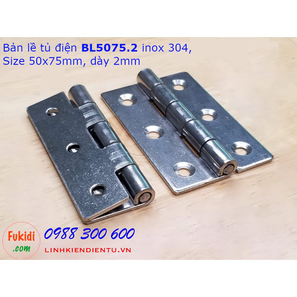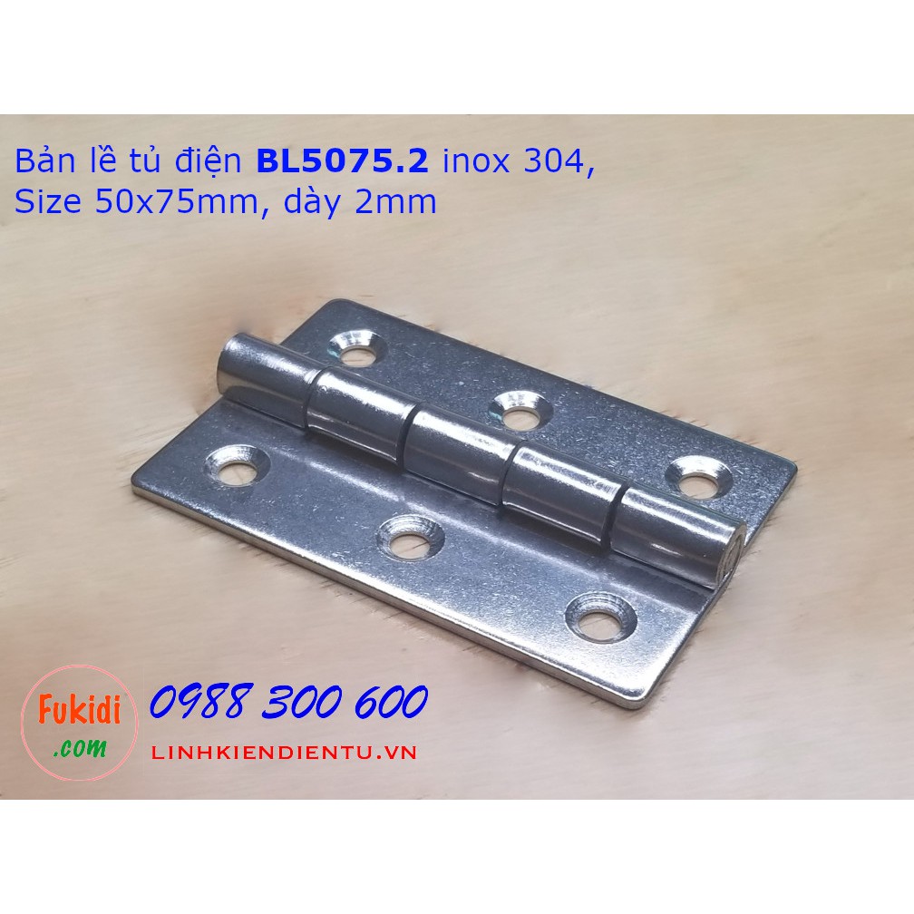 Bản lề tủ điện inox 304, kích thước 50x75mm, bề dày 2mm, model BL5075