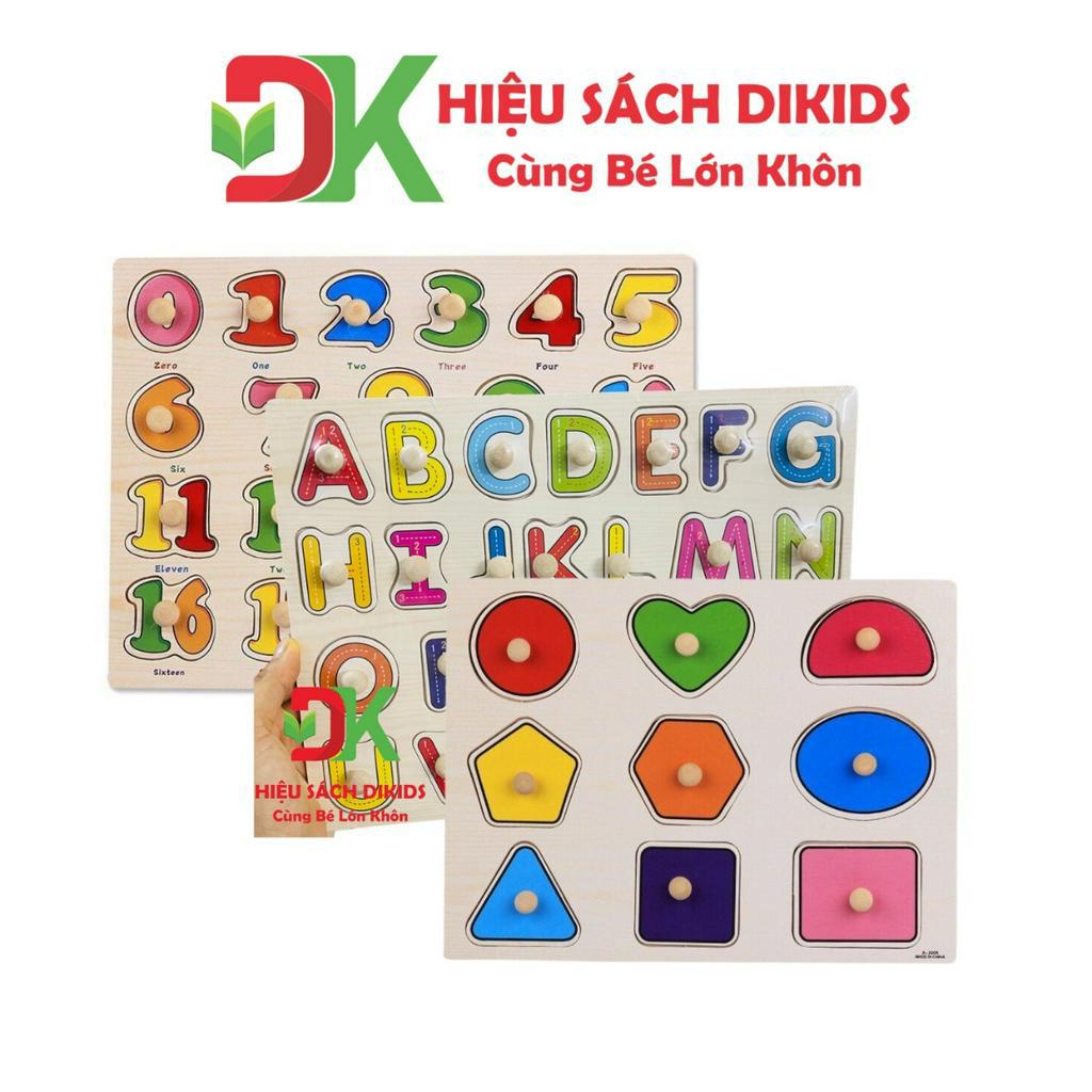 Bảng ghép hình núm gỗ nhiều chủ đề cho bé như động vật, trái cây, rau củ, chữ cái, số học