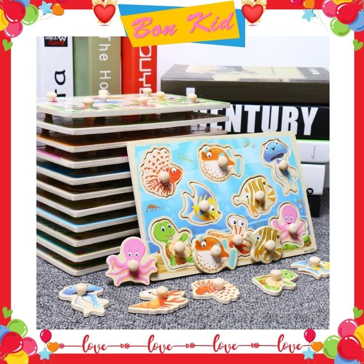 Đồ Chơi Bảng Ghép Hình Núm Gỗ Động Vật, Trái Cây, Chữ Số Giáo Dục Sớm, Phát Triển Trí Tuệ Cho Bé