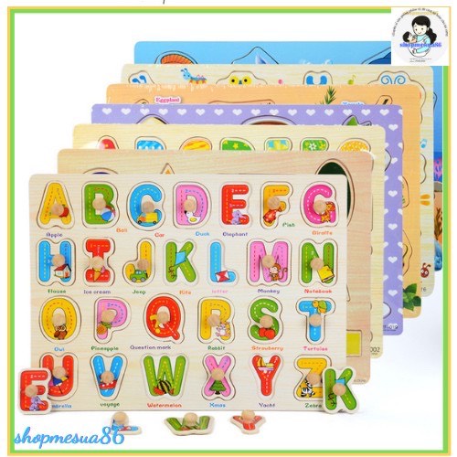 BẢNG GHÉP HÌNH NÚM GỖ LOẠI 1 NHIỀU MẪU TỰ CHỌN CHO BÉ