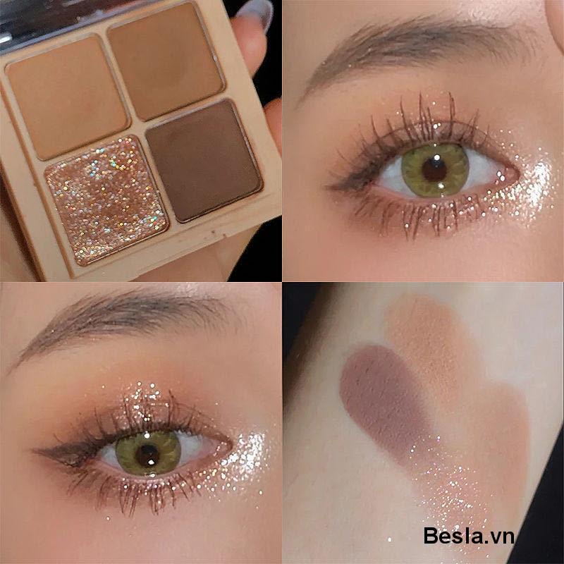 Bảng Phấn Mắt Bốn Màu Sắc Hiệu Ứng Lì / Ánh Nhũ 3D Độ Bóng Cao Tiện Dụng