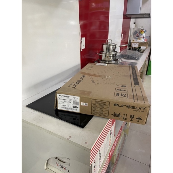 Bếp Từ Eurosun EU- T256 MAX là thiết bị được nhập khẩu trực tiếp tại Malaysia, tích hợp công nghệ nấu INVERTER thông minh vượt trội đun nấu và giữ nhiệt liên tục ở mức thấp nhất không tắt mở giúp tiết kiệm đến 30% nguyên liệu, Sử dụng mặt kính Vitroceramic dễ vệ sinh, chống xước, chống bỏng. ĐẶC ĐIỂM CỦA BẾP TỪ EUROSUN EU-T256max. Bếp từ Eurosun EU-T256MAX sử dụng mặt kính Vitroceramic chịu lực chịu nhiệt tốt lên tới 800 độ C, có khả năng tản nhiệt nhanh chóng an toàn cho người dùng. Bếp được thiết kế với 2 vùng nấu tiện lợi và nhiều tính năng thông minh. Hệ thống bảng điều khiển siêu nhạy ngay cả khi tay còn đang ướt, điều chỉnh tăng giảm nhiệt theo công suất hoặc nhiệt độ chính xác với nhiều mức cho từng bếp nấu riêng biệt, sử dụng các tính năng Booster hay Pause tạm dừng 1 cách dễ dàng + Khi bếp hiện thị theo công suất thì dải điều chỉnh từ 100 - 2200W + Khi bếp hiện thị theo nhiệt độ thì dải điều chỉnh từ 60 - 280°C. Bụng bếp được làm bằng thép sơn tĩnh điện màu trắng đổi mới so với model cũ, chắc chắn và chống rỉ, hệ thống quạt gió hiện đại xoắn ốc giúp bếp vận hành êm và làm mát mạch hơn các dòng quạt gió thường. Ngoài ra bếp còn được thiết kế có chân để nổi trên mặt đá khi quý khách không muốn lắp âm xuống. Dưới bụng bếp còn được dán tem chính hãng xuất xứ Maylaysia, đảm bảo nguồn gốc xuất xứ chuẩn. Hệ thống dây điện nguồn vào của bếp được trang bị 3 dây ngay dưới bụng bếp, dây xanh + nâu là hệ dây nóng lạnh còn dây kết hợp vàng xanh là dây tiếp đất. Khi lắp bếp chúng ta chỉ đơn giản đấu bếp qua 1 attomat với công suất chịu tải 20A hoặc 1 phích cắm siêu tải là có thể sử dụng tốt. Trên mặt kính góc dưới cùng bên tay phải Eurosun thiết kế in chìm tên Model sản phẩm EU-T256 Max, để đảm bảo hàng chính hãng và không thể làm hàng nhái và hàng giả, bạn có thể quan sát đặc điểm của dòng bếp Từ Eurosun EU- T256 Max thông qua các ý tóm gọn sau: Công nghệ biến tần Bridge INVERTER thông minh vượt trội đun nấu và giữ nhiệt liên tục ở mức thấp nhất không tắt mở. Tiết kiệm lên tới 30% điện năng. Chức năng " Booster" siêu nhanh Max 2500W Điều khiển cảm ứng 9 mức công suất Tốc độ tăng nhiệt nhanh gấp 2 lần so với bếp truyền thống. Nấu thức ăn với độ chính xác cao phản ứng tức thì với mức nhiệt mong muốn Tự động phát hiện vùng nấu và vùng nấu chỉ nóng lên khi có nồi. Chức năng hâm nóng Warm ở nhiệt độ mức 65ºC, 75ºC, 85ºC Chức năng chiên rán Frying với nhiều mức nhiệt độ Chức năng an toàn Chức năng tạm dừng “Stop go” Chức năng chống trào nước Water overflow Chức năng tắt tự động tắt bếp khi không có nồi Khóa trẻ em Child lock Hẹn giờ giới hạn thời gian hoạt động. Bảo vệ quá nhiệt (cảm biến nhiệt độ tích hợp trong từng vùng nấu) Chỉ báo nhiệt dư: "H" được hiển thị cho mỗi vùng nấu còn nóng Tính năng chia sẻ công suất tối đa 3500W Thông tin kỹ thuật Điện áp: 220V / 50Hz Công suất lò trái: 2000W - Booster 2500W Công suất lò phải: 2000W Kích thước sản phẩm: 735R x 430S x 60C mm Kích thước khoét đá: 690R x 410S mm