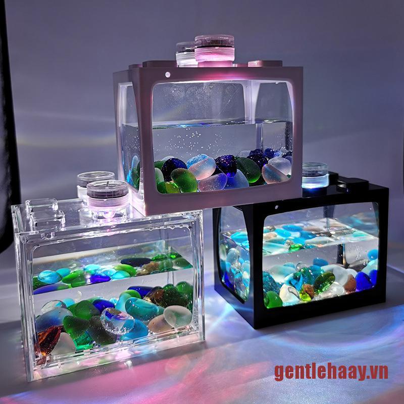 Bể Cá Mini Để Bàn Có Đèn Chạy Bằng Pin Trang Trí Tiện Dụng