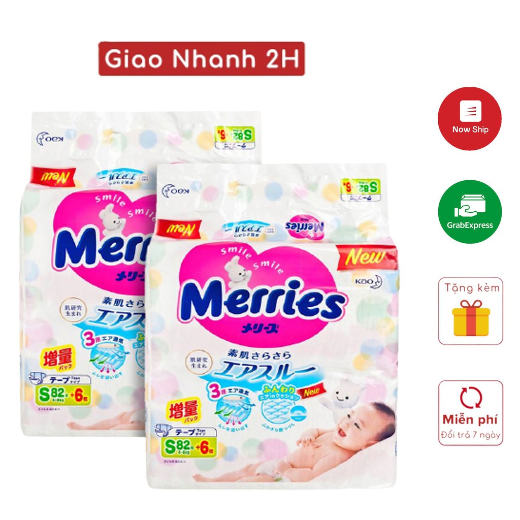Combo 2 bịch bỉm dán/ quần MERRIES cộng miếng nội địa Nhật NB82/ S76/ M60/ / M58/ L50/ Xl44/ XXL28