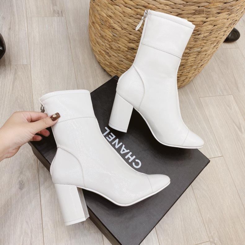 Bốt boot lửng cn da bóng gót trụ tròn spsl fullbox