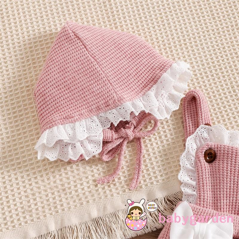 Bộ Áo Liền Quần Dệt Kim Sát Nách Phối Bèo Đính Nơ Màu Sắc Tương Phản Kèm Mũ Xinh Xắn Cho Bé Gái 0-18 Tháng Tuổi