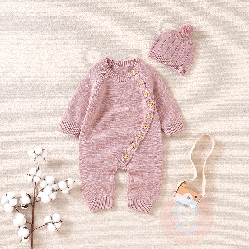 Bộ Áo Liền Quần Dệt Kim Tay Dài Cổ Thuyền Cài Nút + Mũ Cho Bé LAA6-Baby