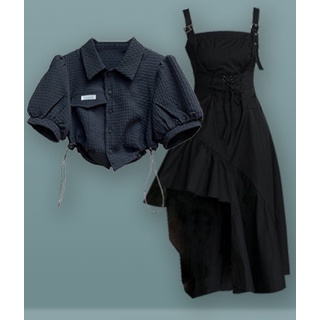 Bộ Áo Sơ Mi Tay Phồng Ngắn + Chân Váy Yếm Màu Đen Phong Cách Mori Cổ Điển Dễ Phối Đồ Thời Trang Mùa Hè 2022