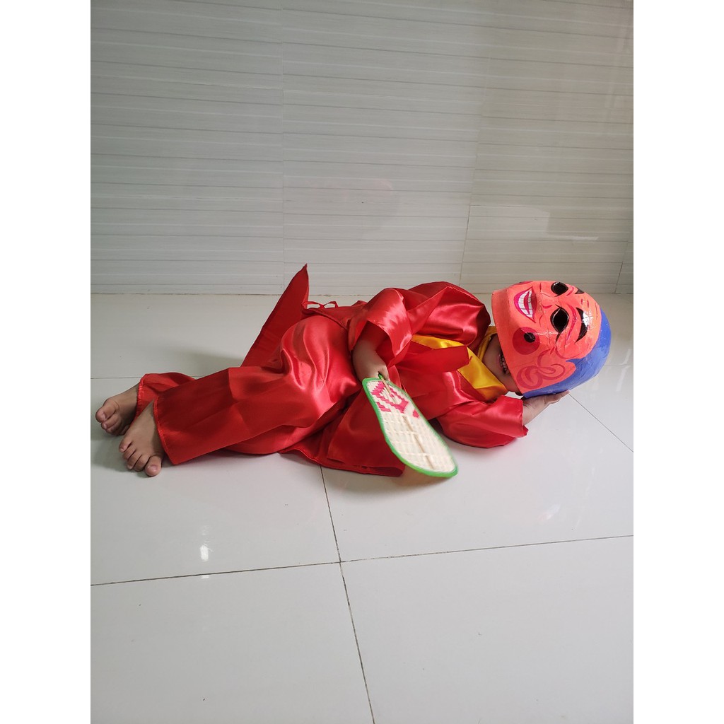 Bộ ông địa cho bé từ 3 tuổi trở lên với giá siêu rẻ Sản phẩm bao gồm: set quần áo địa kèm đai bụng+ mặt nạ + quạt mo Chất liệu : quần áo vải phi bóng đỏ, mặt nạ địa làm bằng giấy Hãy cho bé rời xa điện thoại để bé hoá trang vào những nhân vật vui nhộn nào các ba mẹ ơ