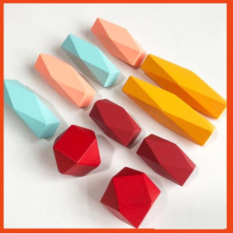 Bộ 10 Khối Đá Bằng Gỗ Cân Bằng TUMI ISHI Nhiều Màu Sắc - Giáo Cụ Montessori