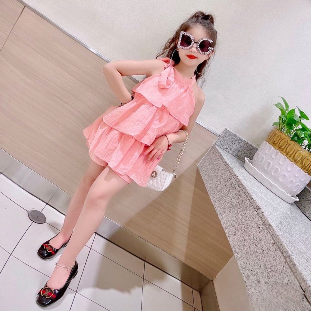 Bộ đũi tầng cổ yếm set yếm mùa hè cho bé gái, set bộ đũi áo yếm nơ 2022