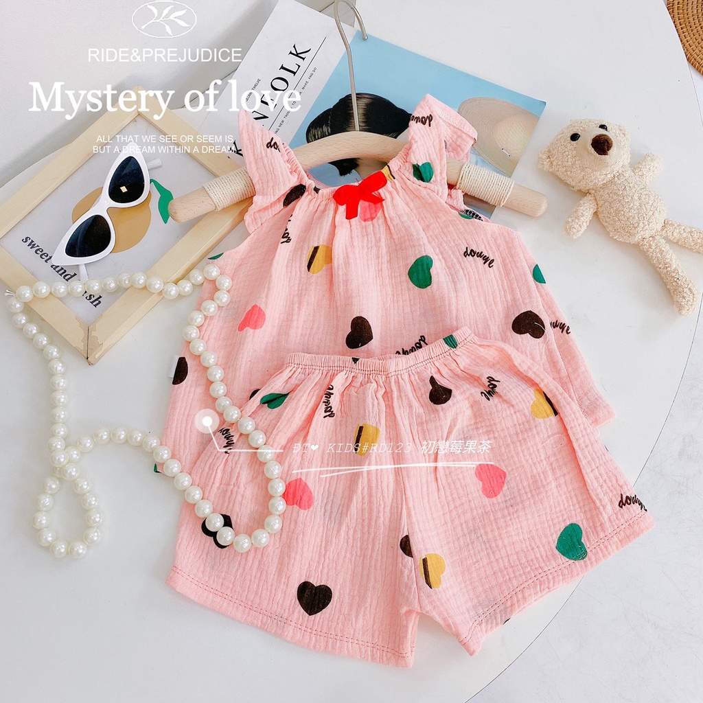 Bộ Đồ Cộc Tay Xô Muslin Bé Gái 5-16kg Tay Bèo Chất Mềm Mát Hoạ Tiết Xinh, Bộ Đi Chơi, Mặc Nhà Cho Bé - AN.KID