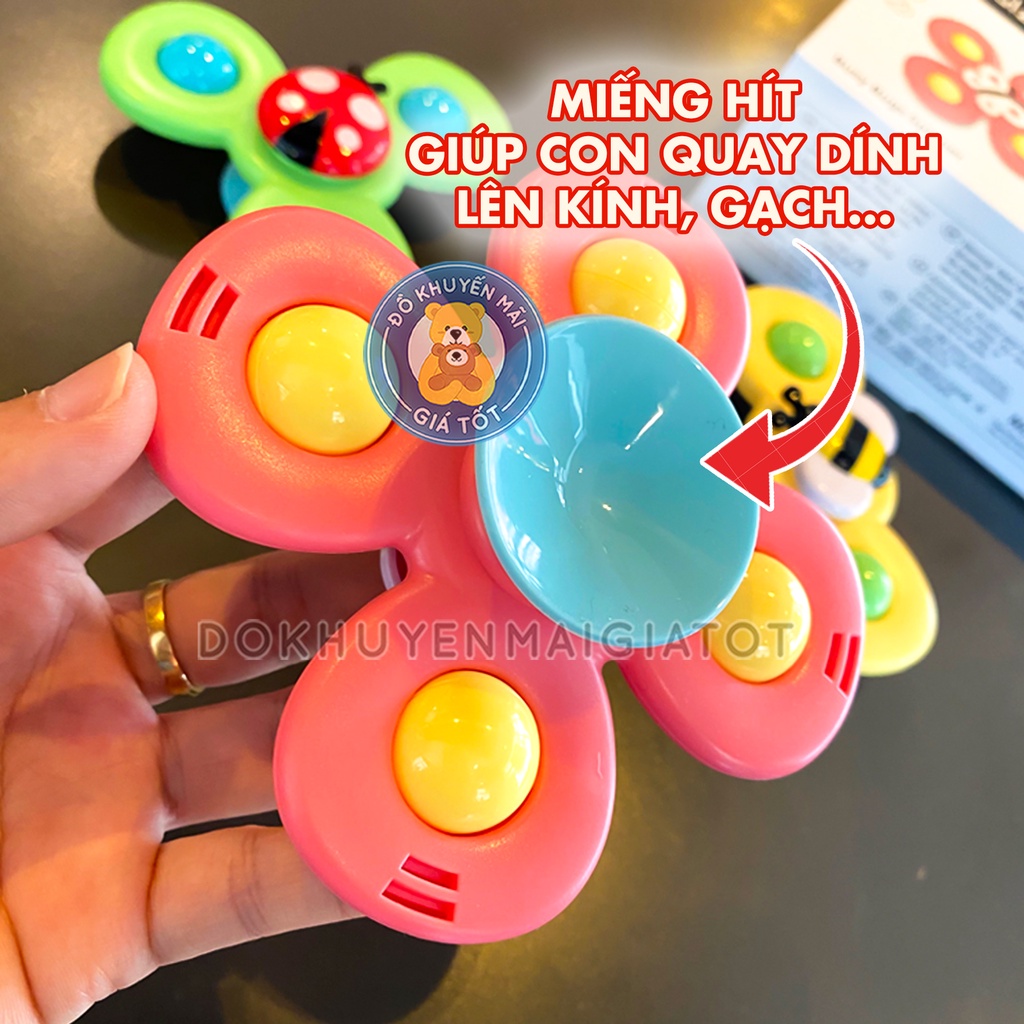 CHÚ Ý: _Con quay sẽ dính chắc trên bề mặt nhẵn bóng như: Kim loại, kính, nhựa, gạch. _Bề mặt tường sần sùi con quay sẽ ko dính chắc đâu ạ. Quý khách vui lòng đọc kỹ mô tả thông tin SP trc khi mua hàng nhé. ❤️ Thông tin sản phẩm: ✅ Combo gồm 3 con quay loại: 2 cánh , 3 cánh và 4 cánh ✅ Màu sắc: Vàng, xanh, hồng. ✅ Chất liệu nhựa ABS cao cấp, có độ bền cao, có khả năng chống rơi rớt, đồng thời chống thấm nước rất hiệu quả. ✅ Nhựa không có mùi, không gây hại cho sức khỏe của bé. Đồ chơi con quay cho bé đi kèm với một giác hút ở phía dưới có thể bám vào bất cứ bề mặt kim loại, nhựa, kính nào nhẵn và phẳng để bé yêu của bạn không bị giới hạn trong việc tận hưởng niềm vui với con quay dễ thương này. ✅ Chong chóng dính tường Hình dáng động vật dễ thương, màu sắc bắt mắt thu hút sự chú ý của bé khi chơi, giúp bé không quấy khóc khi tắm. Con quay dán tường hoạt hình có bề mặt nhẵn, không có gờ trên bề mặt nên sẽ không làm tổn thương bé khi chơi. Dễ dàng sử dụng để chơi cùng: đồ chơi con quay của chúng tôi phù hợp với mọi nơi. Bạn có thể hút ở những vị trí như kính, tường, sàn nhà, bồn tắm,… làm bạn chơi cùng với trẻ, hoặc trang trí sân chơi cho trẻ nhỏ. Đồ chơi con quay là Món quà hoàn hảo cho con bạn: đó cũng là món quà tuyệt vời nhất dành cho con bạn, cũng là món quà thích hợp nhất trong tất cả các loại quà tặng ngày lễ, bao gồm sinh nhật, giáng sinh, v.v., và những món quà đặc biệt để mang lại niềm vui cho bé. Đồ chơi con quay cho bé giúp bé phát triển khả năng cầm nắm và sự linh hoạt của đôi tay. ❤ Đặc biệt với chuyển động xoay tròn nhẹ nhàng chỉ bằng lực rất nhẹ, giúp bé chơi dễ dàng, phát triển khả năng quan sát và làm quen với màu sắc của SPINNER. Đồ chơi con quay phù hợp với kính, tường, sàn nhà, bồn tắm, làm bạn chơi cùng với trẻ. ✅Giao hàng toàn quốc ✅Đổi trả theo đúng quy định của Lazada nếu hàng sai hàng lỗi nsx