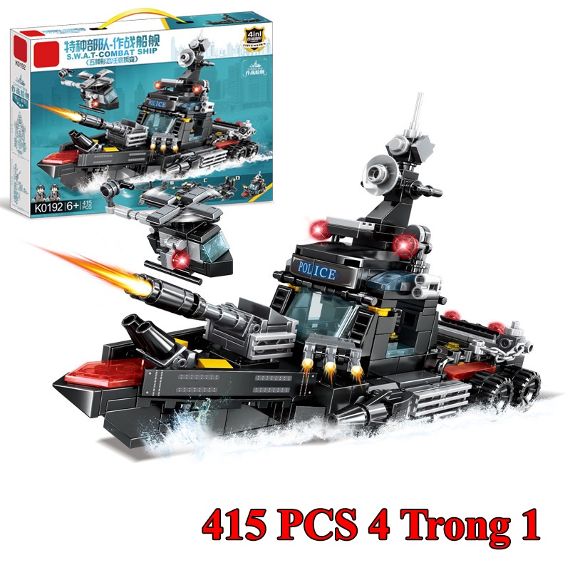 BỘ ĐỒ CHƠI LẮp Ráp Mô Hình Tàu Chiến Hạm - Đồ Chơi Lắp Ráp Cảnh Sát Biển – 4 Trong 1