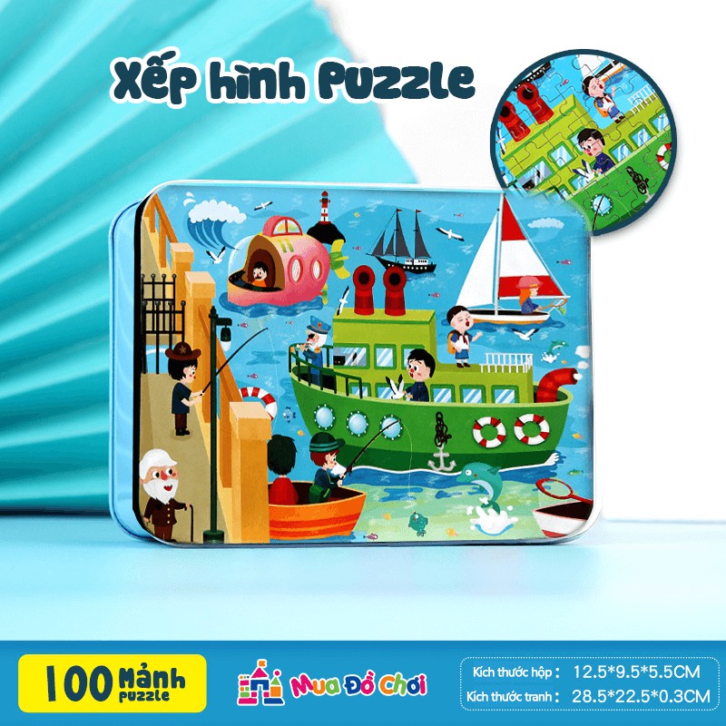 Bộ đồ chơi tranh 100 mảnh ghép Tranh gỗ puzzle Hộp sắt cho bé