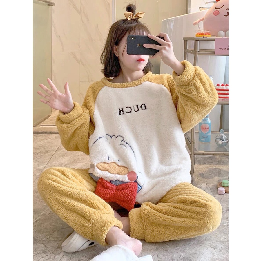 YAMI bộ đồ ngủ dài tay mùa đông bông dày pijama hoạt hình dễ thương đồ mặc nhà nữ