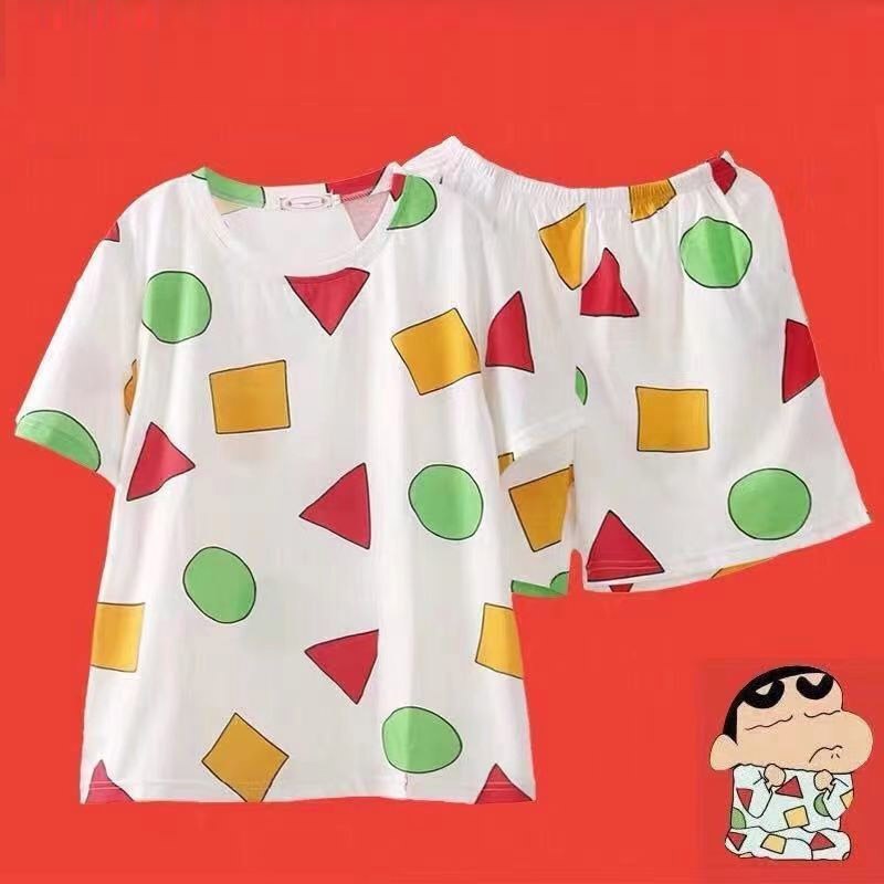 Bộ đồ ngủ EERSHENSHI ngắn tay cổ tròn in hoạt hình dễ thương cho nam và nữ