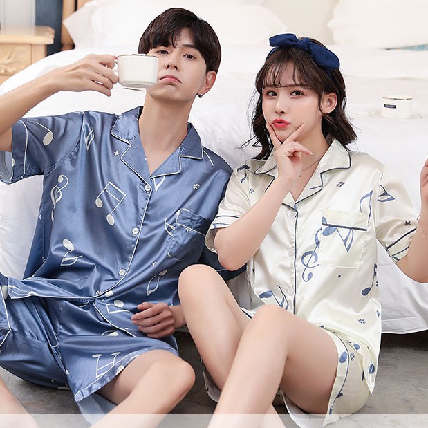 Bộ Đồ Ngủ Pijama Bằng Lụa Bóng Gợi Cảm Cho Cặp Đôi