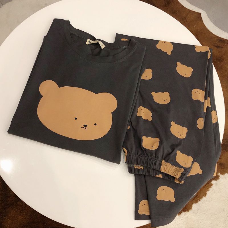 Bộ Đồ Ngủ Tay Dài Dáng Rộng In Họa Tiết Gấu Dễ Thương Thời Trang Mùa Thu Cho Nữ