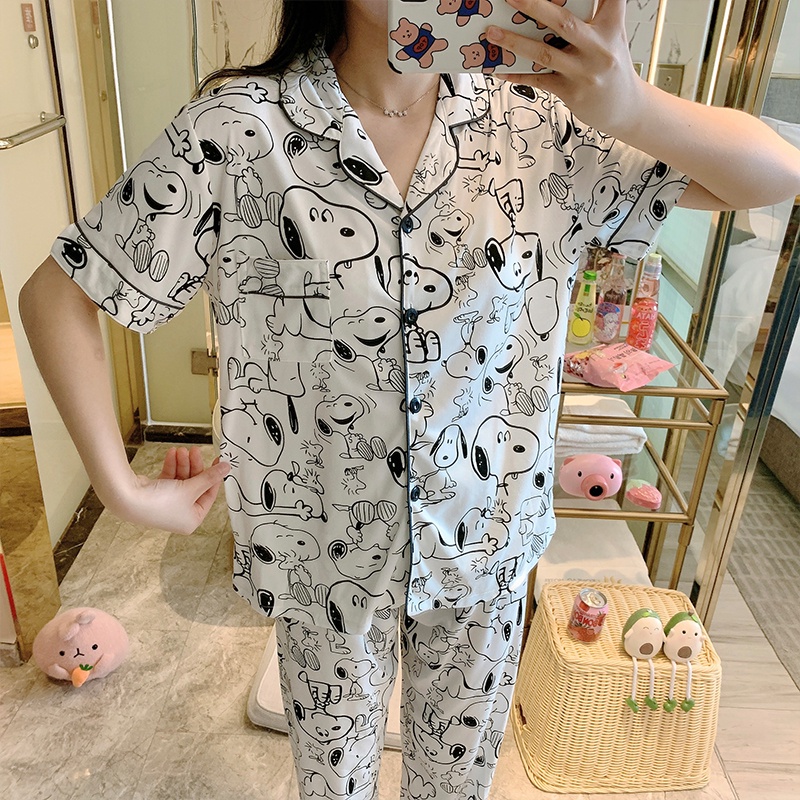 Bộ đồ ngủ tay dài in họa tiết chú chó snoopy dễ thương cho nữ