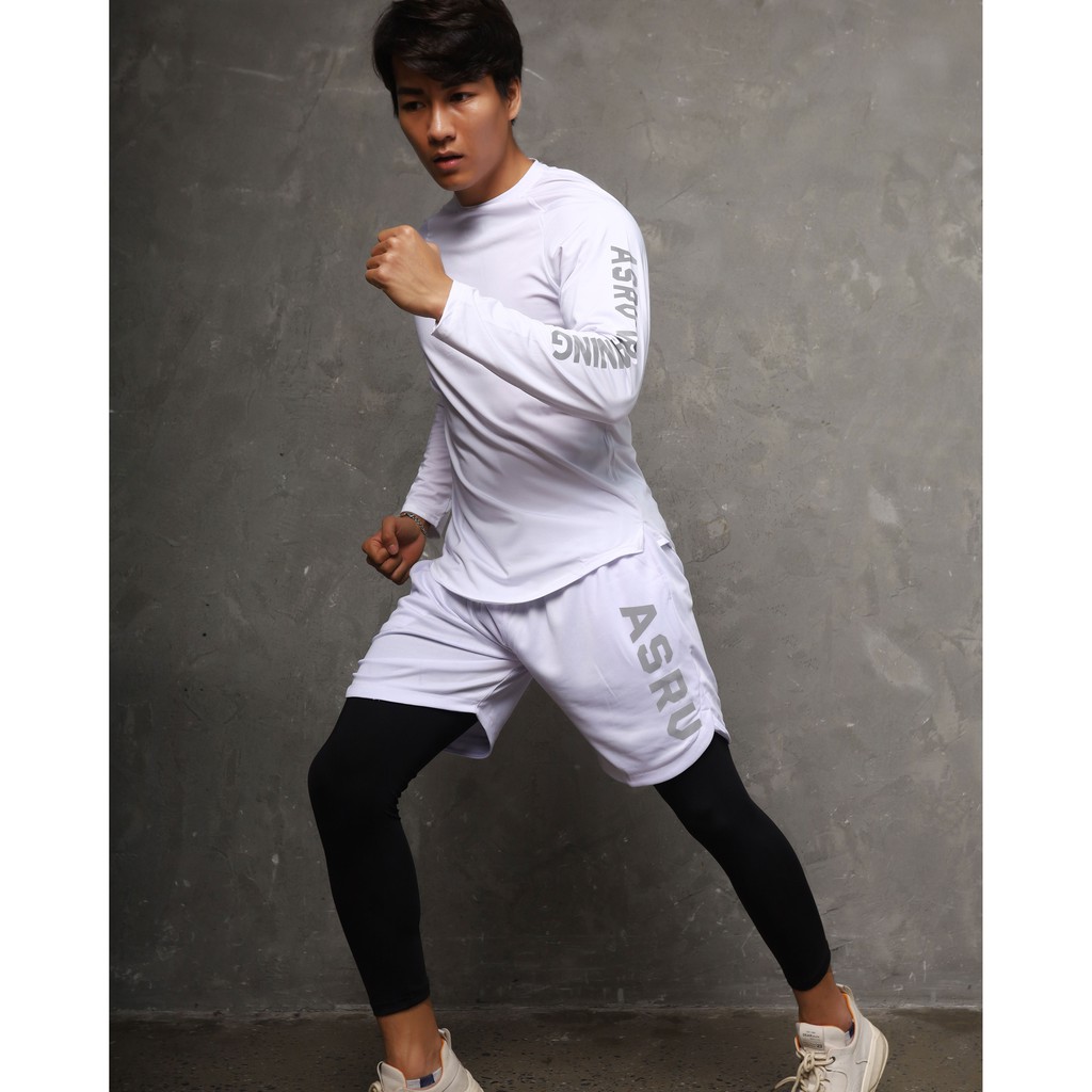 Bộ Đồ Tập Gym Nam ASRV Training Thun 4C Kết Hợp Quần Legging 2 lớp và Áo Gym Dài Tay