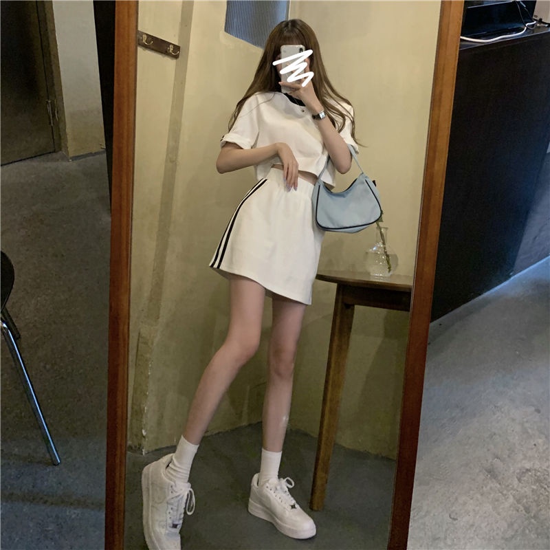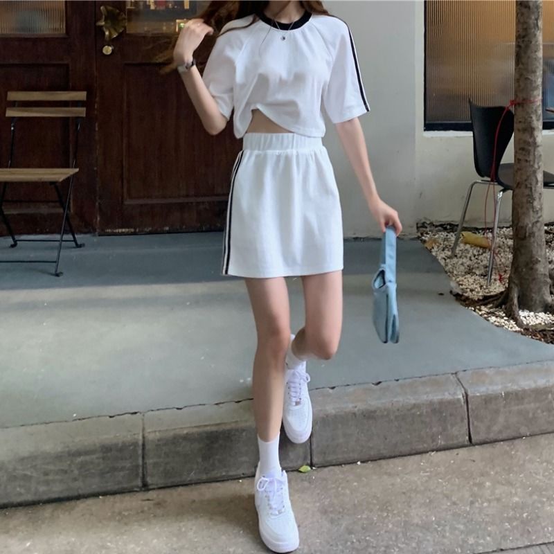 ✿Welcome【Bunny fashion】✿ All Our Products Are Carefully Selected by the Owner. All Items Are Made of High Quality Materials,So You Can Buy with Confidence。 All Goods Are in Stock,Can Be Shipped Immediately after Placing an Order If You Have Any Size Or Other Questions,Please Contact the Small。 Thank You for Your Support?Please Keep Coming Here? - - - - - - - -Product Description - - - - - - - - Style:Simple Commute/Korean-Style Popular Elements:Applique,Open Wire Decoration Style:Skirt Set Sleeve Length:Short-Sleeve Fabric/Material:Cotton/Cotton Composition Content:30%And the following For Ages:Youth(18-35Years Old) Whether Fleece-Lined:Don't plus Velvet 【The Size Indicated,Authentic Guaranteed】 S Suitable for Weight37-45kg M Suitable for Weight45-50kg L Suitable for Weight50-55kg XL Suitable for Weight55-60kg 2XL Suitable for Weight60-68kg