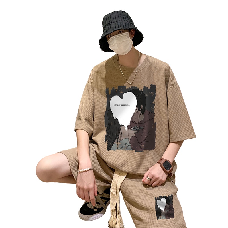 Bộ đồ thể thao hai món IFNICEFUTURE gồm áo thun tay lửng và quần short dáng rộng thời trang cho nam