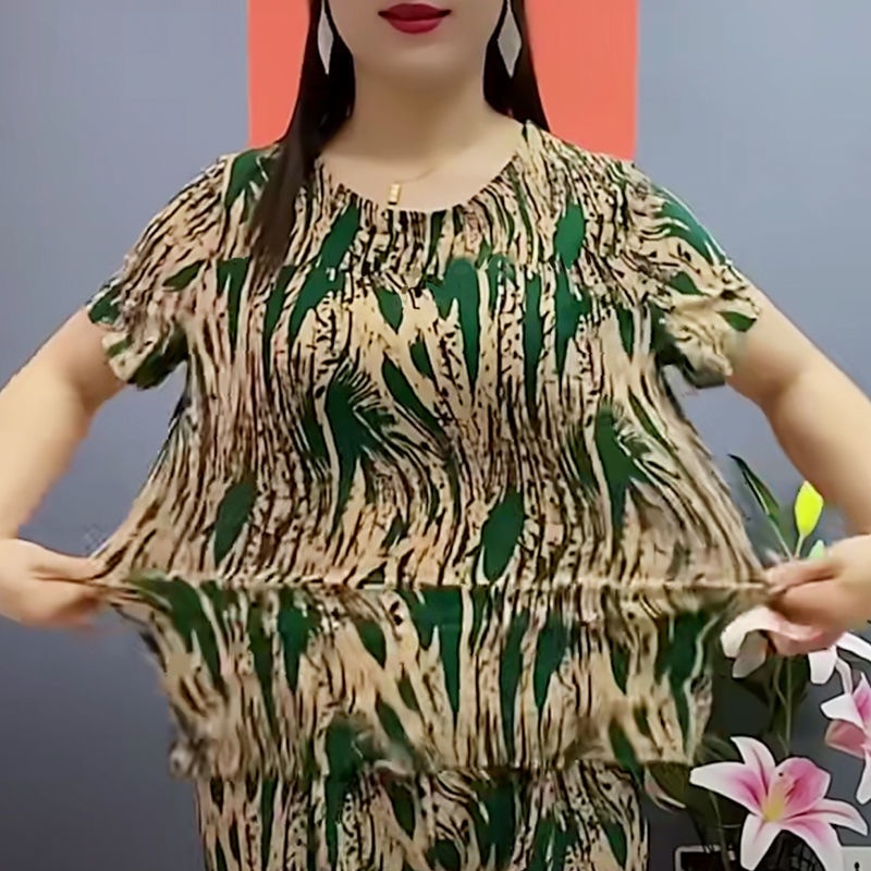 Bộ Đồ Thời Trang Vải Lụa Lạnh Siêu Nhẹ Thoáng Khí Kiểu Phương Tây Xinh Xắn Cho Nữ Trung Niên