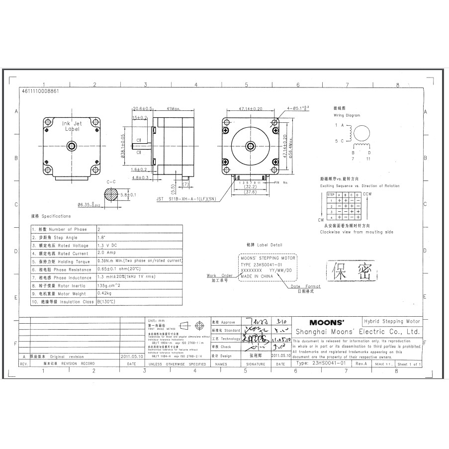 -Quý khách xem ảnh để biết thông số động cơ. Thông số driver: Model: SR2 Brand: Moons Made In: China Voltage: 12-48V DC (0.3-2.2A) Phase: 2 Dimension: 93mm X 56mm X 21mm Weight: 140g ---------------------------------------------------------------------------