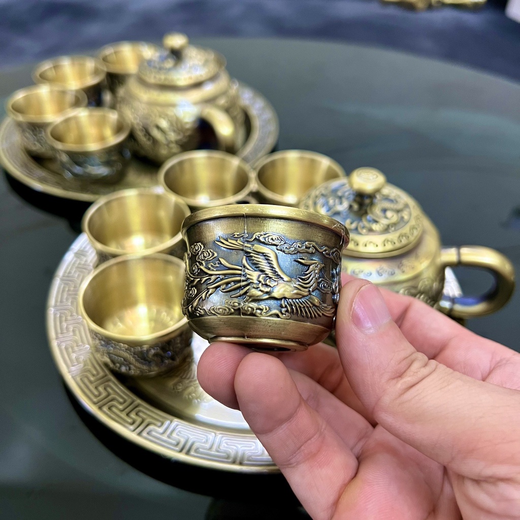 BỘ ẤM CHÉN ĐỒNG LONG PHỤNG SUM VẦY CHẤT LIỆU SẢN PHẨM -Bộ sản phẩm gồm có 1 Ấm, 1 Đĩa, 5 Chén -Sản phẩm được đúc từ hợp kim với 70% là đồng thau -Chống oxy hóa, rỉ sét. -Bảo hành 6 tháng, lỗi 1 đổi 1 NO1VIE - Gia dụng đẳng cấp cam kết : SẢN PHẨM GIỐNG ẢNH 100% • Đảm