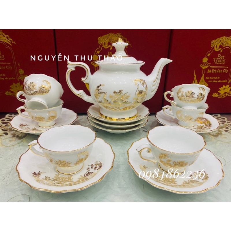 Bộ ấm chén men trắng vẽ cảnh vàng kim Bát Tràng sang trọng tinh tế - DÁNG ẤM PHÚ QUÝ 🌟🌟🌟 - phân loại: chén lượn chân ly. ✅ Hàng Bát Tràng cao cấp loại 1 ✅ Nung đốt nhiệt độ cao,khử mọi tạp chất, an toàn tuyệt đối khi sử dụng lâu dài. ✅ Màu sắc : trắng vàng kim. ✅ 2 size: dung tích ấm 450ml và 750ml.(ấm nhỏ- chén nhỏ, ấm to- chén to) ✅ Bộ gồm : 1 ấm 6 chén 7 đĩa kê ✅ GIÁ SẢN PHẨM CHƯA BAO GỒM HỘP XI VẢI ĐẸP ! - Quý khách có nhu cầu mua hộp đi biếu tặng vui lòng inb shop 🎁🎁🎁 ✅ fb: Nguyễn Thu Thảo(gốm sứ Bát Tràng) *****NHẬN IN LOGO SLL BAO GIÁ TOÀN QUỐC ! ☎️ 0984862236