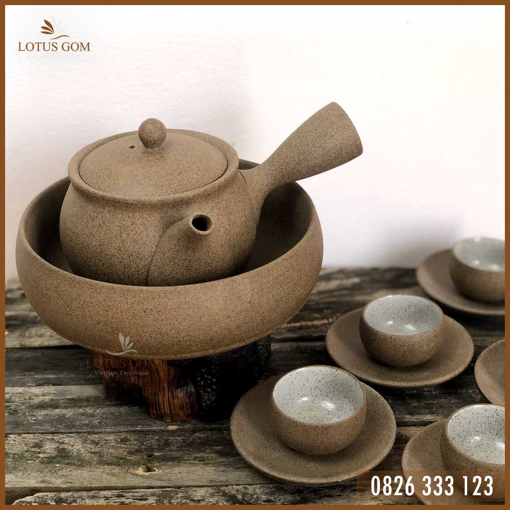 Bộ Ấm Trà Đẹp Làm Quà Tặng - Ấm Trà Tử Sa Quai Ngang Bát Tràng Kèm Hộp