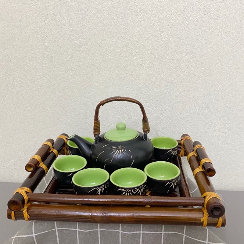 Bộ ấm trà, tặng kèm khay màu đá xanh ngọc hoa trong lòng ấm chén gốm sứ Bát tràng