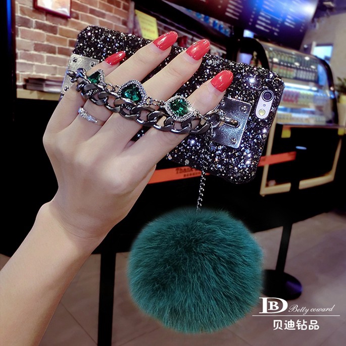 Bộ Ốp Điện Thoại Đính Kim Cương Có Bóng Lông Mini Cho iPhone 14 13 12 11 Pro Max 6 6s 7 8 Plus X XS Max XR 12