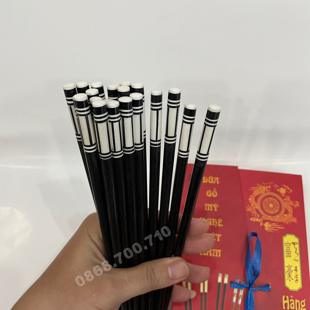 Bộ 10 đôi Đũa ăn gỗ Mun cao cấp đầu tròn gắn Ốc biển Trắng -- đũa ăn cao cấp -- có bảo hành sản phẩm